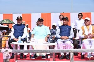 रायपुर, 5 नवम्बर 2025/ छत्तीसगढ़ राज्य स्थापना की 25वीं वर्षगांठ पर आज नवा रायपुर के सेंध जलाशय के ऊपर भारतीय वायु सेना की प्रतिष्ठित एरोबेटिक “सूर्यकिरण” की टीम ने रोमांचक एयर शो का प्रदर्शन किया। देश के उप राष्ट्रपति श्री सी.पी. राधाकृष्णन, राज्यपाल श्री रमेन डेका, मुख्यमंत्री श्री विष्णु देव साय और विधानसभा अध्यक्ष डॉ. रमन सिंह के साथ हजारों लोगों ने अद्भूत और रोमांचक एयर शो का आनंद लिया। आज प्रदेशवासियों के लिए वायु सेना का एयर शो कमाल का अनुभव रहा। सेंध जलाशय के ऊपर वायु सेना के फाइटर प्लेन्स ने एक के बाद एक कई हवाई करतब दिखाए। आसमान में पंछियों के झुंड की तरह बिल्कुल क्रम से उड़ने वाले फाइटर प्लेन्स के माध्यम से वायु सेना के जाबांजों ने अपने नियंत्रण और शौर्य का अद्भुत प्रदर्शन किया। विमानों के माध्यम से जब आकाश में तिरंगा लहराया तो सेंध जलाशय भारत माता की जय के नारे से गूंज उठा।