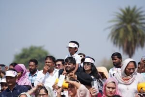 3 फाइटर विमानों ने आसमान में हार्ट, डायमंड, लूप, ग्रोवर, डान लाइट, कॉम्बैट तेजस जैसे शानदार फार्मेशन बनाकर लोगों को रोमांचित किया। नीले आसमान में उड़ते लाल-सफेद जेट विमानों द्वारा तिरंगे की आकर्षक ट्रेल छोड़ने पर सेंध जलाशय परिसर तालियों और जय-हिंद के नारों से गूंज उठा। हज़ारों की संख्या में मौजूद नागरिक, युवा और बच्चे लगातार विमानों की कलाबाजियों को अपने कैमरों और मोबाइलों में कैद करते रहे।