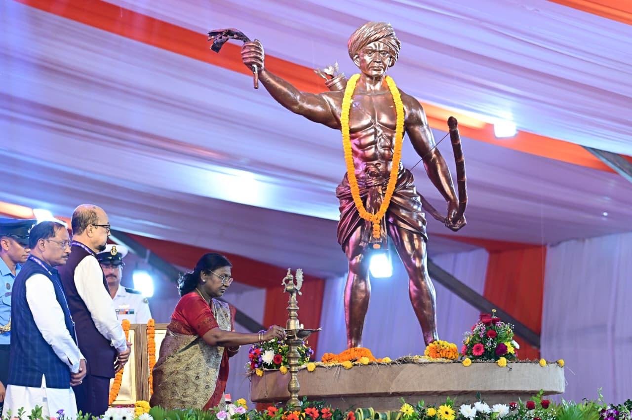 राष्ट्रपति श्रीमती द्रौपदी मुर्मु ने छत्तीसगढ़ में जनजातीय गौरव पखवाड़ा मनाने, जनजातीय स्वतंत्रता सेनानी संग्रहालय बनाने और शासकीय योजना के बेहतर क्रियान्वयन के लिए छत्तीसगढ़ सरकार और मुख्यमंत्री विष्णुदेव साय की मंच से तारीफ की। उन्होंने कहा कि भारत लोकतंत्र की जननी है, और इसकी झलक बस्तर की ‘मुरिया दरबार’ जैसी जनजातीय परंपराओं में भी दिखाई देती है। उन्होंने कहा कि छत्तीसगढ़, झारखंड और ओडिशा की जनजातीय विरासत अत्यंत समृद्ध और आपस में जुड़ी हुई है। राष्ट्रपति ने बताया कि उनके कार्यकाल के दौरान राष्ट्रपति भवन में ‘जनजातीय दर्पण’ संग्रहालय की स्थापना की गई है, तथा वहां आदिवासी कला और संस्कृति को विशेष स्थान दिया गया है। उन्होंने केंद्र सरकार द्वारा संचालित ‘आदि कर्मयोगी अभियान’, ‘धरती आबा जनजातीय ग्राम उत्कर्ष अभियान’ तथा ‘प्रधानमंत्री जनमन अभियान’ को जनजातीय समाज के उत्थान हेतु महत्वपूर्ण कदम बताया। उन्होंने कहा कि ये सभी योजनाएँ देश के करोड़ों आदिवासी परिवारों को शिक्षा, आजीविका, स्वास्थ्य और विकास के नए अवसर प्रदान कर रही हैं। राष्ट्रपति ने बताया कि दिल्ली में आयोजित ‘आदि कर्मयोगी’ राष्ट्रीय सम्मेलन में छत्तीसगढ़ के आदिवासी विकास विभाग को उत्कृष्ट कार्य के लिए राष्ट्रीय पुरस्कार प्राप्त हुआ है। उन्होंने इस उपलब्धि के लिए मुख्यमंत्री  विष्णु देव साय तथा उनकी पूरी टीम को बधाई दी।
